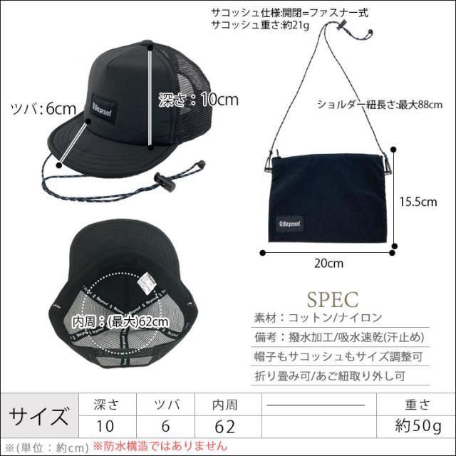・小さいサコッシュバッグ付きで帽子を折り畳み、収納やスマホ等も収納可能◎