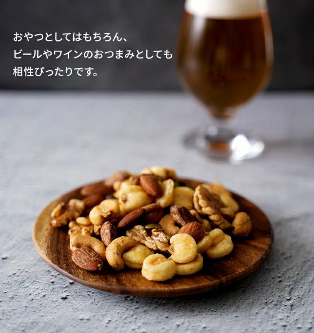 オリーブオイルでカリっとローストした肉の旨みを感じるスモークベーコンにカシューナッツ、アーモンド、マカダミアナッツなど食感の違うナッツを合わせました。クランベリーの酸味と甘みがアクセントのこだわりのナッツはビールやワインと好相性です。