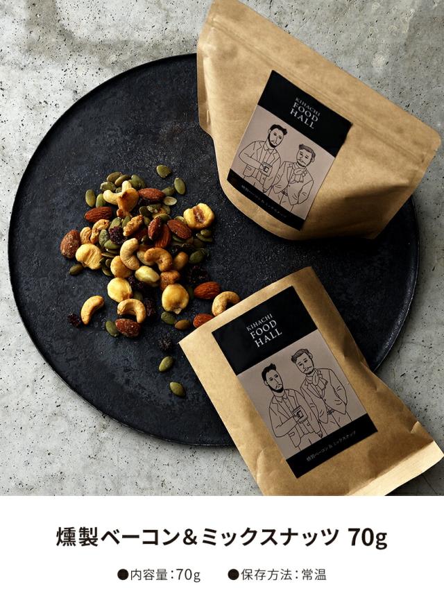 贈り物 お供え 手土産 ギフト プレゼント キハチ フードホール 燻製ベーコン&ミックスナッツ 70g プチ結婚 出産 内祝い お祝 お返し 内祝 御祝 誕生日 ナッツ おつまみ おしゃれ 高級