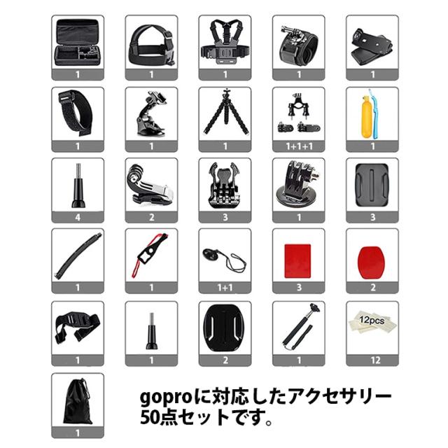 ・GoProに対応した便利アイテム/アクセサリー50点セットです
