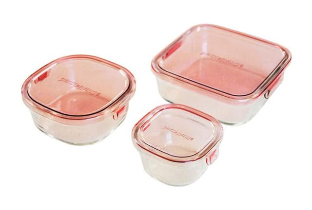 iwaki、イワキ、パック&レンジ、角型3点セット、ピンク、耐熱ガラス、保存、おしゃれ、常備菜、作り置き、浅い、もちより、冷蔵庫、電子レンジ、オーブン、耐熱皿、プレート、お菓子、製菓