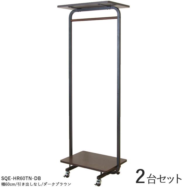 SQE-HR60 ワイドハンガーラック【2台セット】引出しなしタイプ ダークブラウン色 / 2色 スチール 幅60×奥行き40×高さ164.5cm