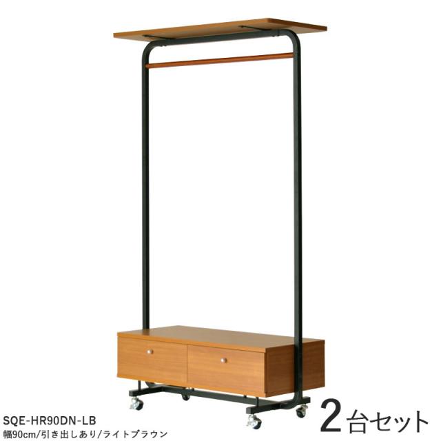 SQE-HR90 ワイドハンガーラック【2台セット】引出しタイプ ライトブラウン色 / 2色 スチール 幅90×奥行き40×高さ164.5cm