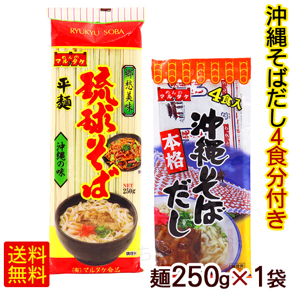 琉球そば 250g×1袋 (粉末そばだし4食分付き) /マルタケ 平麺 乾麺 沖縄そば 【M便】ポイント消化