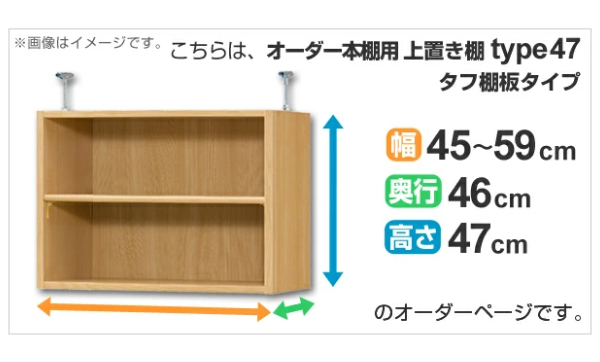 専用 上置き棚 タフ棚板 type47 オーダー本棚 奥行46cm 幅45-59cm用 ( オーダーメイド 天井つっぱり 本棚 多目的ラック セミオーダー )