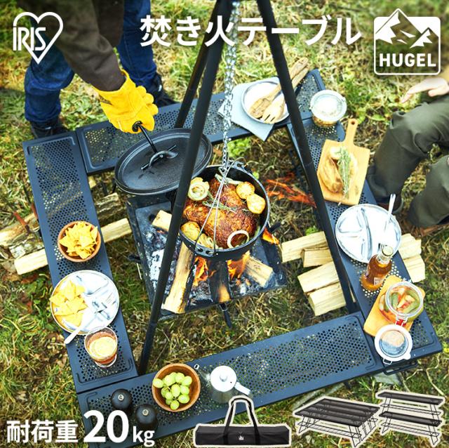 アウトドア 折りたたみテーブル アイリスオーヤマ * ウッドグレインテーブル WGT-1100 キャンプ用品 高さ ハイ ロー 2way ロールトップ キャンプ アウトドア レジャー メッシュ棚 長方形 軽量 コンパクト 木目調 HUGEL ヒューゲル 新生活