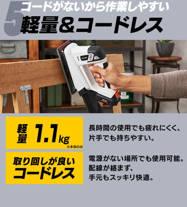 アイリスオーヤマ製の充電式工具(10.8V)シリーズとの共通バッテリーが使用できます。