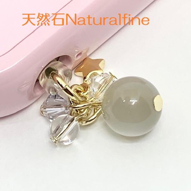 イヤホンジャック iPhone アンドロイド グレー ムーンストーン 天然石 ストラップ パワーストーン 旅の安全
