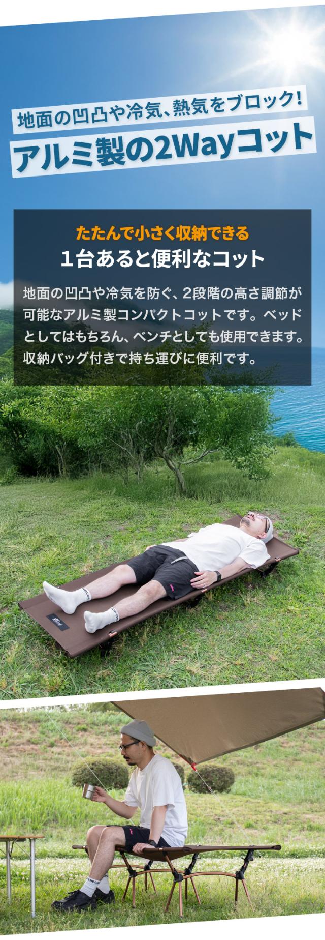 FIELDOOR コット 2WAY キャンプ アウトドアコット フォールディング 幅190cm×66cm 高さ調整 2段階 19cm/40cm アウトドア 折りたたみ ベッド ハイタイプ ロータイプ 軽量 アルミ コンパクト レジャー BBQ ベンチ 椅子 荷物置き 1年保証 送料無料