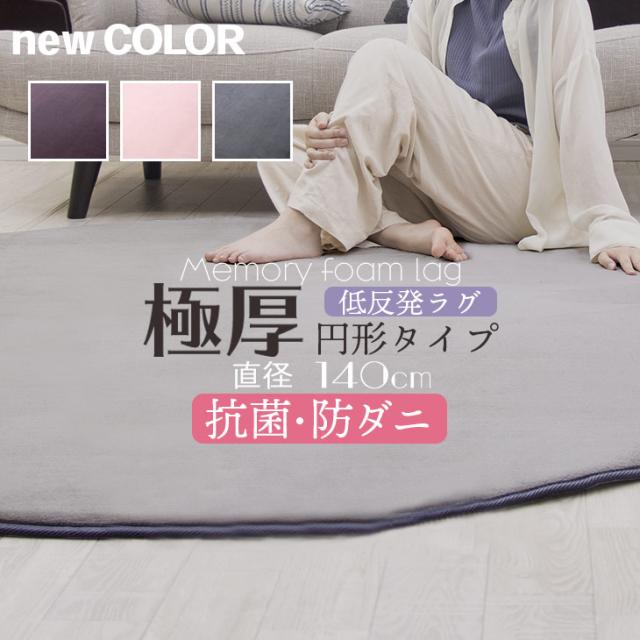 ラグ 円形 低反発 直径140cm 極厚25mm 洗える ラグ 厚手 滑り止め 低反発マット マットリビング 秋 冬 用 フリーリー