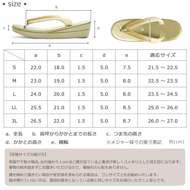 セットの草履には、S〜3Lと幅広いサイズをご用意いたしました。