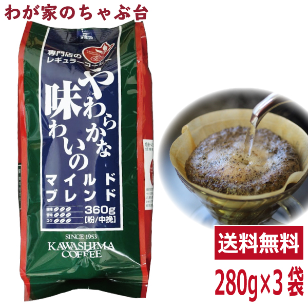 送料無料 コーヒー乃川島 マイルドブレンド 280×3袋セット コーヒー 珈琲 ドリップ コーヒー豆 珈琲豆 コーヒー乃川島 カワシマ かわしま