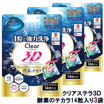 クリアステラ3D 酵素のチカラ 14粒入り 3袋 おためし 洗濯用洗剤 送料無料 75580