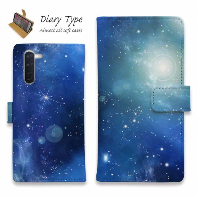 Android スマホケース 手帳型 マグネット カード収納 スタンド OPPO Reno5 A OPPO Reno3 A Android One S8 ケース シンプルスマホ6 らくらくスマートフォン LG V60 ThinQ xiaomi mi URBANO アンドロイド ケース 星 星空 夜空 月 かわいい ティマイオスのブルー