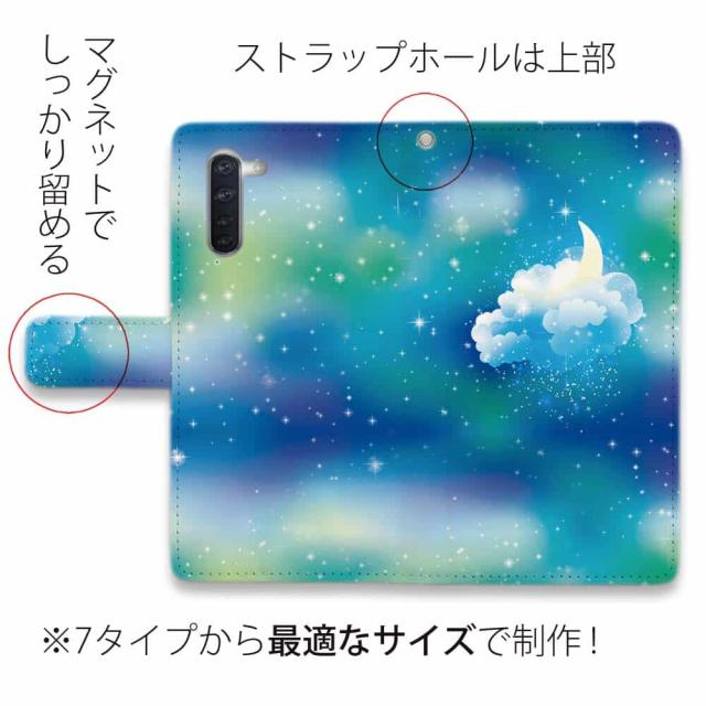 Android スマホケース 手帳型 マグネット カード収納 スタンド OPPO Reno5 A OPPO Reno3 A Android One S8 ケース シンプルスマホ6 らくらくスマートフォン LG V60 ThinQ xiaomi mi URBANO アンドロイド ケース 星 星空 夜空 月 かわいい ふんわり雲と三日月