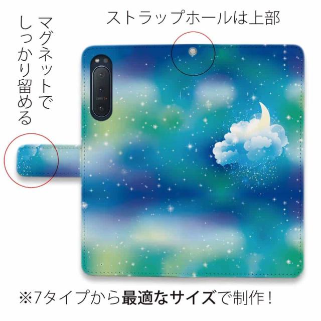 Xperia 10 VII Xperia 1 VII Xperia 10 VI Xperia 1 VI Xperia 10 V Xperia 1 V Xperia 5 IV Xperia Ace III スマホケース 手帳型 マグネット カード収納 エクスペリア5 エクスペリア10 ケース 星 星空 夜空 月 かわいい ふんわり雲と三日月