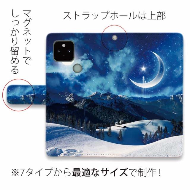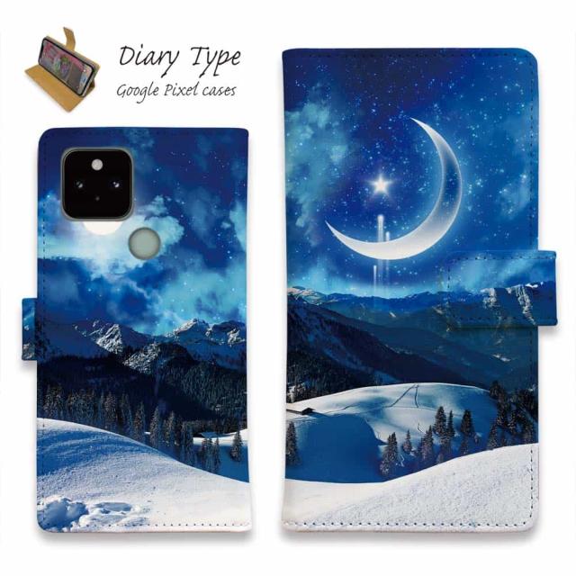 Google Pixel 10 Pro XL ピクセル10 プロ スマホケース 手帳型 マグネット カード収納 Google Pixel9a Pro Google Pixel8a Pro Google Pixel7a Pro Google Pixel6a Google Pixel6 ピクセル ケース 星 星空 夜空 月 かわいい 雪山と大きな三日月