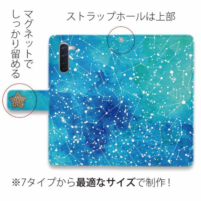 Android スマホケース 手帳型 マグネット カード収納 スタンド OPPO Reno5 A OPPO Reno3 A Android One S8 ケース シンプルスマホ6 らくらくスマートフォン LG V60 ThinQ xiaomi mi URBANO アンドロイド ケース 星 星空 夜空 月 かわいい 星座物語 タッセルチャーム付き