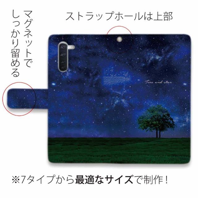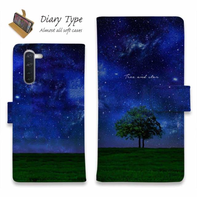 Android スマホケース 手帳型 マグネット カード収納 スタンド OPPO Reno5 A OPPO Reno3 A Android One S8 ケース シンプルスマホ6 らくらくスマートフォン LG V60 ThinQ xiaomi mi URBANO アンドロイド ケース 星 星空 夜空 月 かわいい Tree and star