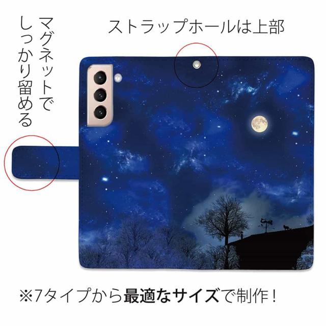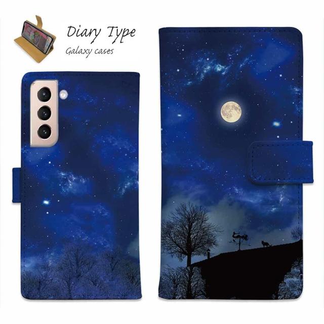 Galaxy S25 A25 Ultra S24 FE A56 スマホケース ギャラクシー ケース 手帳型 マグネット カード収納 Galaxy S24 ケース A35 A54 A23 A53 A52 A51 A41 A32 A31 A22 S23 S23+ S22 S21 S10+ S10 ギャラクシー ケース 星 星空 夜空 月 かわいい 屋根の上のネコと満月