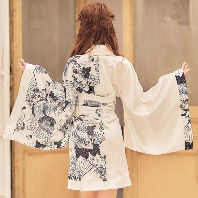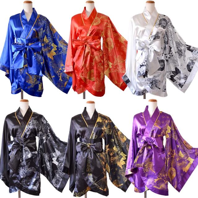 和風扇子柄のツートンカラー着物ミニドレス。 半分が柄、半分が無地とインパクト大の和風扇子柄着物ミニドレス イベントコスチュームとしてはもちろんダンス衣装,ダンス部の学校の衣装などに皆で揃えて購入される方も多いです。 羽織って交差し紐を穴に通し結び、付属の帯を巻くだけ誰でも簡単に着用できます。 羽織タイプのためLサイズぐらいまでは対応可能。 当店おすすめ花魁着物ミニドレス |