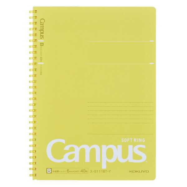 【メール便発送】コクヨ キャンパス ソフトリングノート 中横罫 ドット入り カットオフ B5 黄 ス-S111BT-Y