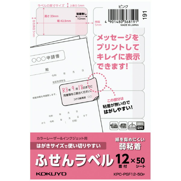 (まとめ買い)コクヨ カラーレーザー&インクジェット用はがきサイズで使い切りやすい ふせんラベル 12面 50シート ピンク KPC-PSF12-50P 〔3冊セット〕 【北海道・沖縄・離島配送不可】
