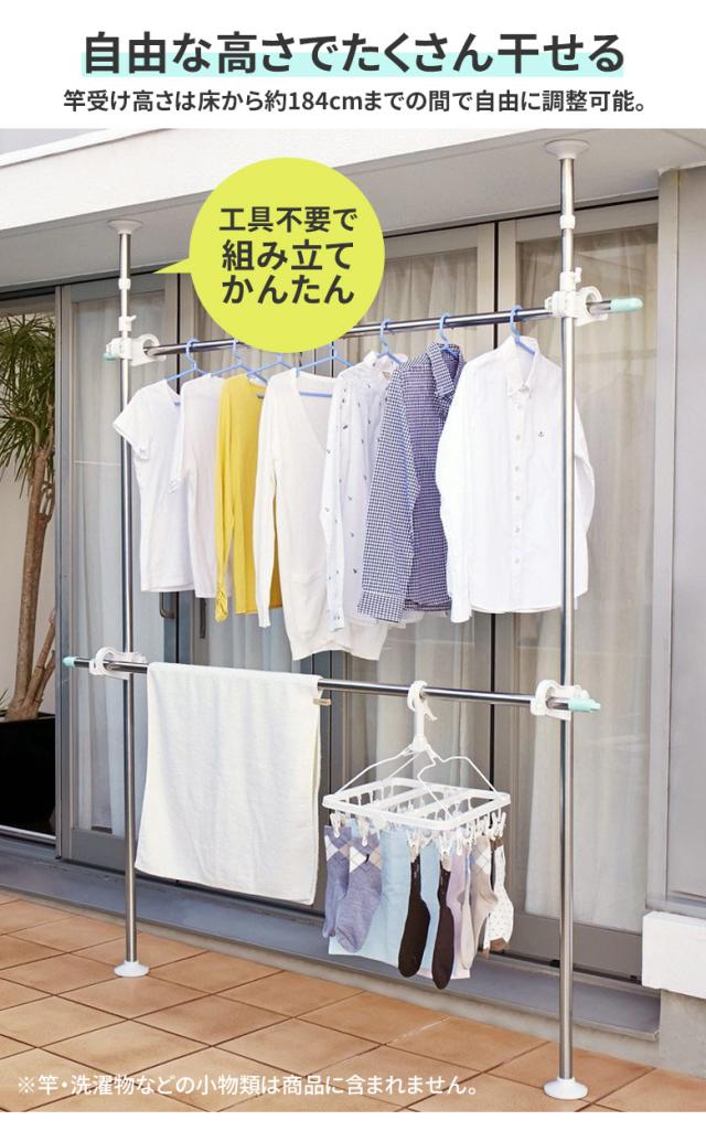 ワンタッチベランダ物干し受け 2段 MC-80 物干し竿受け ベランダ 室内 屋外 物干し スタンド 物干しスタンド 突っ張り 洗濯 室外 ステンレス スリム 一人暮らし つっぱり式 マンション ベランダ用 矢嶋屋