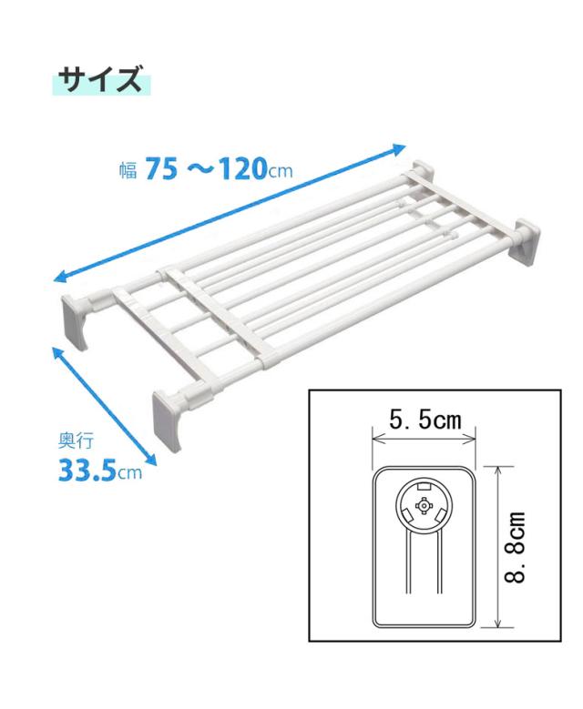【サイズ】約幅75〜120cm×奥行 33.5cm×高さ9cm
