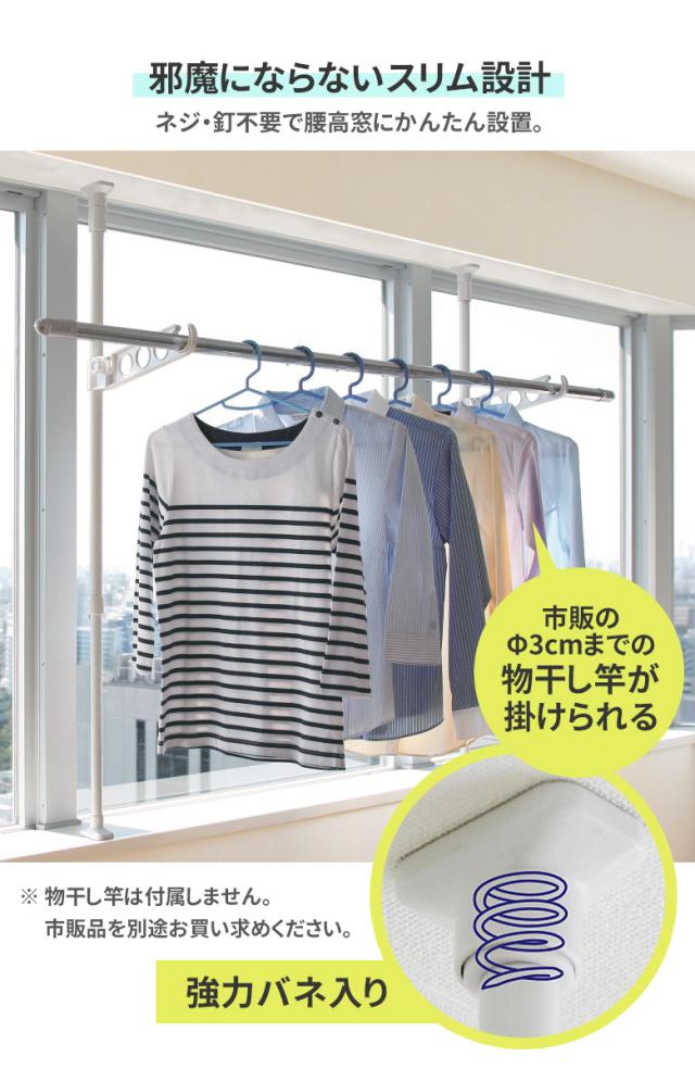 雨の日も安心、工事不要、窓枠に突っ張るだけの竿受け。