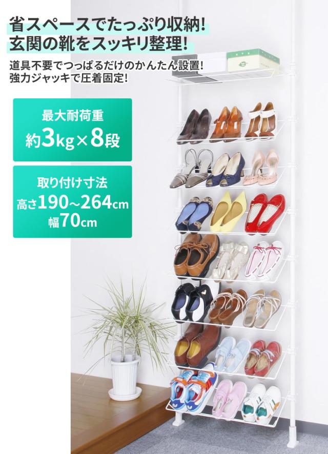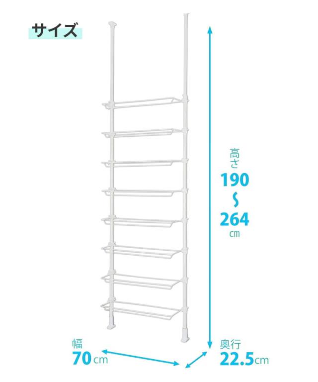 突っ張りシューズラック 8段 TSR-70 玄関収納 靴収納 靴箱 下駄箱 スリム つっぱり棒 突っ張り棒 突っ張りラック つっぱりラック くつ おしゃれ シンプル 矢嶋屋