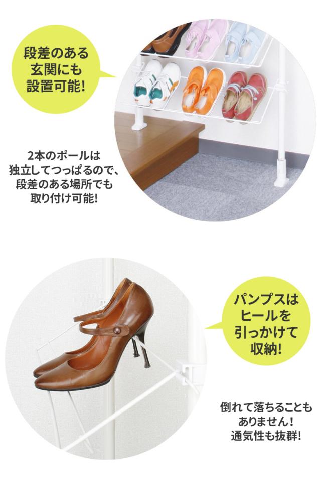 ●パンプスはヒールを引っ掛けて収納、通気性も抜群。