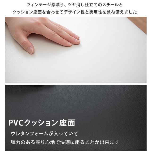 フレーム:スチール、背:合成樹脂化粧繊維板、張地:合成皮革、クッション材:ウレタンフォーム