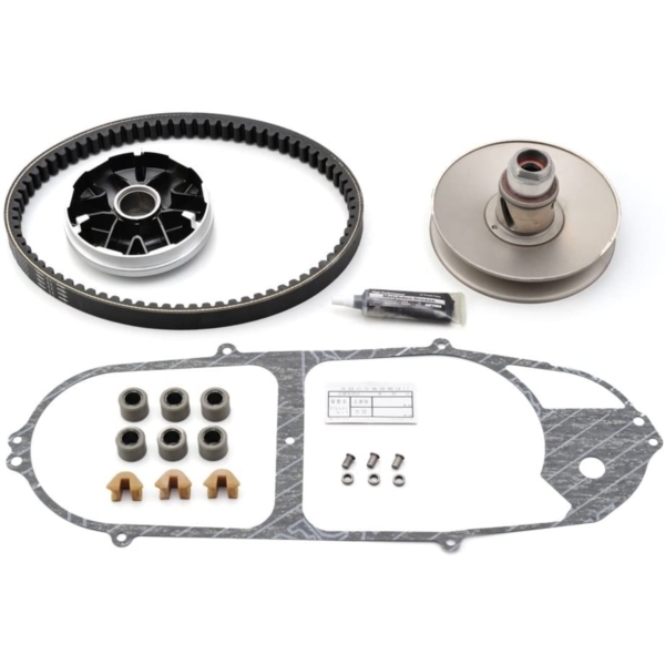 基本的な商品内容はクランクケースカバーガスケット、DWRウエイトローラー、スライドピース、ドリブンのピンとカラー、Oリング、強化Vベルト、ハイスピードプーリー(車種により内容物は異なります)です。