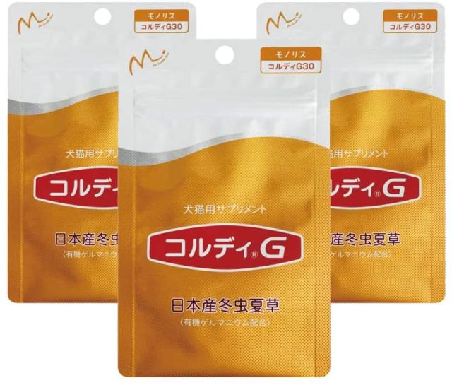 コルディG30g 3個セット 犬猫動物用冬虫夏草サプリメント 純国産
