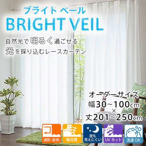 カーテン レースカーテン オーダー 断熱カーテン 省エネ 遮熱 断熱 透けにくい 採光 明るい 「ブライトベール」 幅30-100cm 丈201-250cm