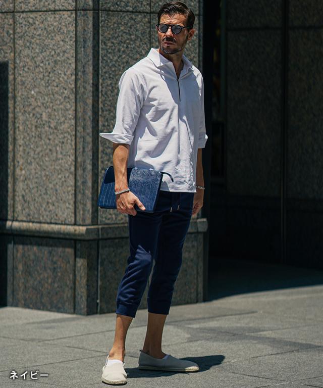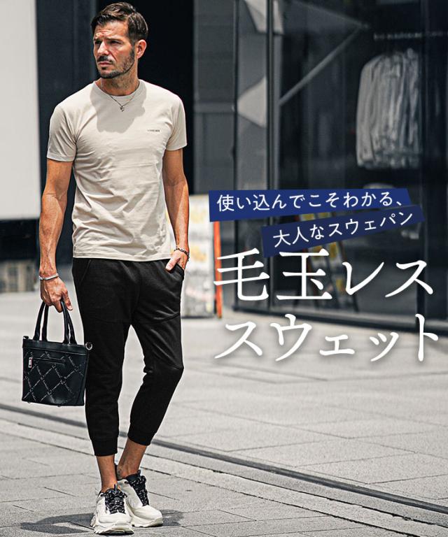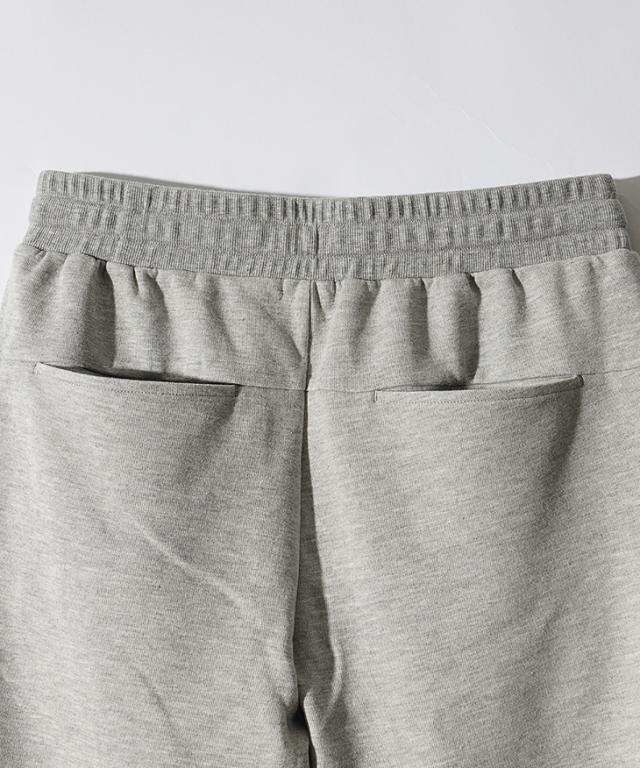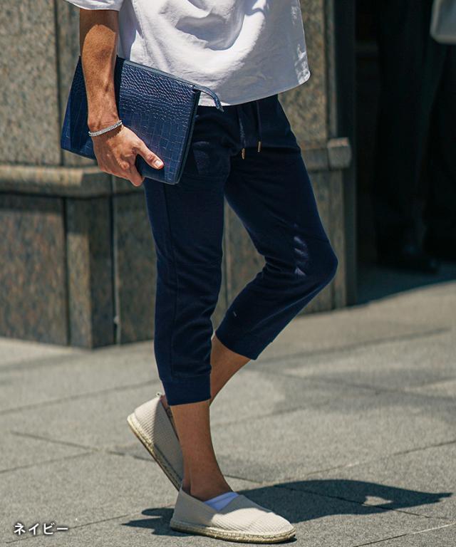 新素材を使用した『美脚クロップドジョガーパンツ』極細のシルエットがきれいな脚のラインを表現してくれるクロップドジョガーパンツ。【遂に出会う究極の一本】美シルエットと快適な穿き心地、そんな贅沢が出来たら良いなと思いませんか?極細のシルエットと抜群の伸縮性を兼ね備え誕生した一本は、脚全体にフィットし、穿きやすくもスタイリッシュできれいな脚元を表現してくれる。また、毛玉が出来づらい新素材を採用し、毛玉が出来て生活感が出てしまう従来のスウェットジョガーパンツの弱点を解決。いつまでもサラリとしたきれいなルックスを。クロップド(7分)丈を採用することで、足首が見え、スッキリとした足元に。美シルエットと快適な穿き心地、贅沢してみませんか?