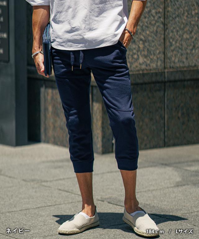 スウェット素材のクロップドパンツ。