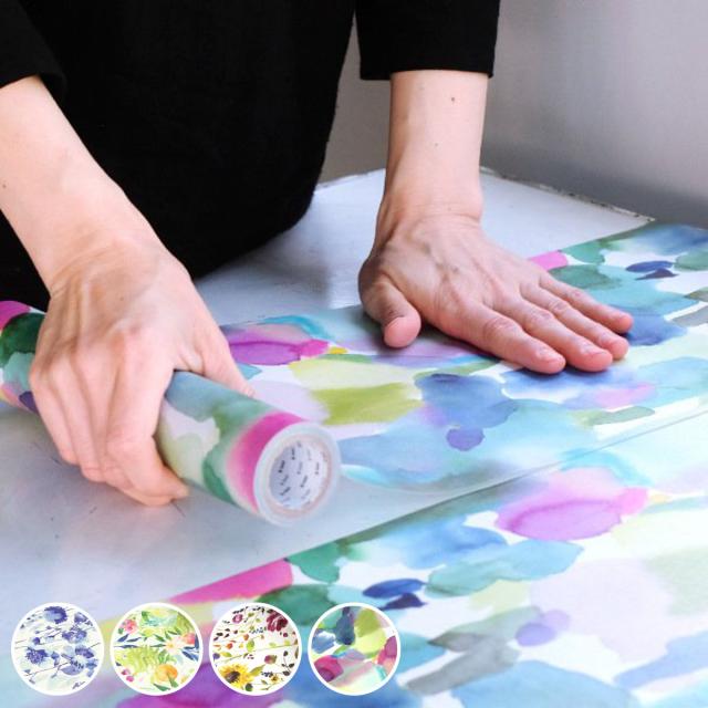 《 LH8430 LH7023 LH3040 貼ってはがせる はがせる壁紙 幅広マスキングテープ diy デコレーション インテリア キッチン 水回り リビング 家具 デスク テーブル 賃貸 マンション 模様替え 花 水彩 カラフル 》