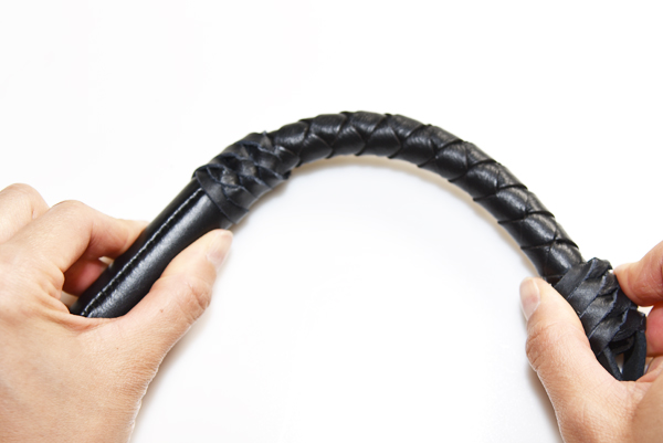 ※ブラックジャックはコイルスプリングを本革で巻いた商品です。コイルスプリングは写真にも写っているようにグリップエンドのギリギリまでは入っていません。グリップエンドがお団子になっている箇所は皮を団子に型取っているだけで、その中にはコイルスプリングも金属も入ってはいません。そのためお団子を持って振り出すと本革が千切れてブラックジャック本体が飛んで行ってしまいます。本体を保持するときは必ずコイルスプリングが入っている硬い箇所をしっかりと握ってご使用ください。
