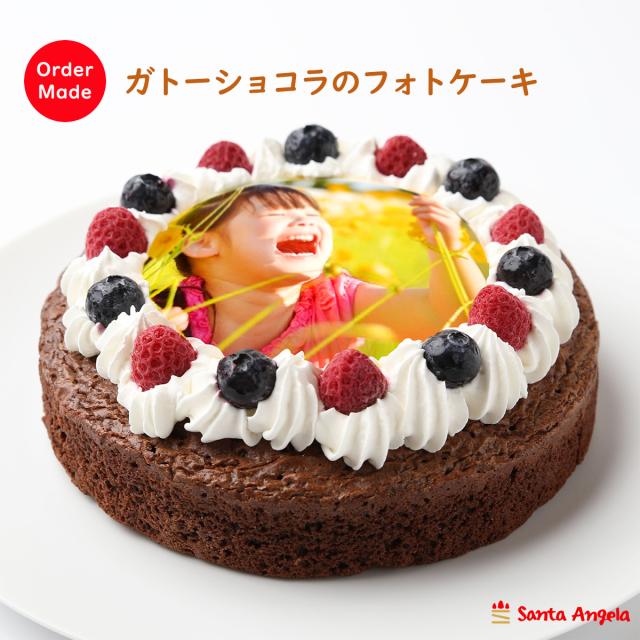カカオ57%のクーベルダークチョコレートをたっぷり使用して作った濃厚なガトーショコラケーキにお客様のお好みの画像(メールに画像ファイルを添付していただきます)を当店にて食べられるインクとコーンスターチを主原料とした食べられるペーパーを使用してプリントした画像をチョコプレートに貼り付けガトーショコラにデコレーションするオーダーメイドの写真ケーキですケーキのまわりには北海道産純生ブレンドのホイップクリームを使用してラズベリーとブルーベリーを飾っています。ホイップクリームはコクがあるのに後味のさっぱりした甘さ控えめのほんのりとバニラが香るクリームです。チョコレート系のケーキがお好きな方への記念日やバースデーギフトにおすすめです