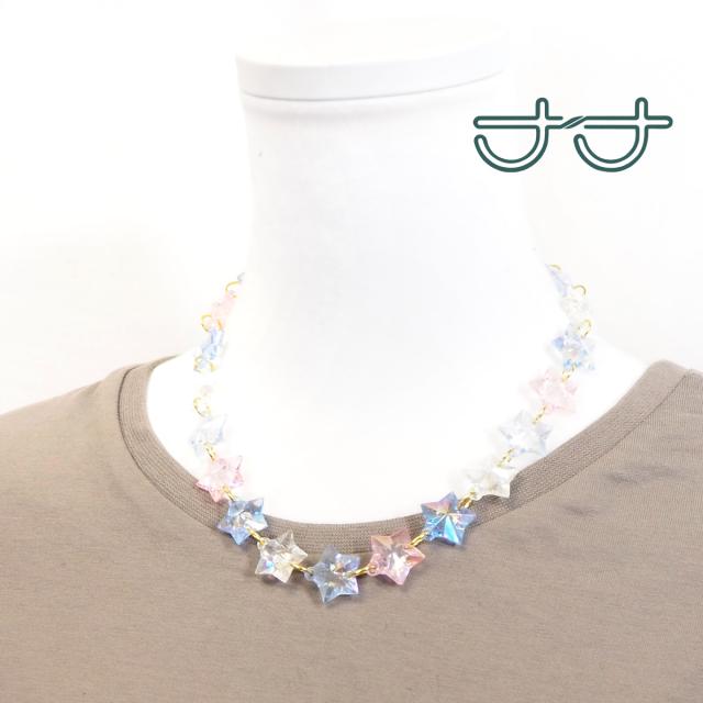 送料無料 ネックレス レディース サマー 透明カラー オーロラカラー スター 繋ぎ