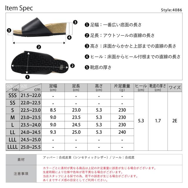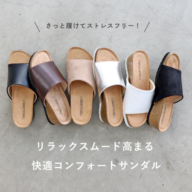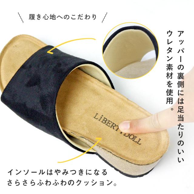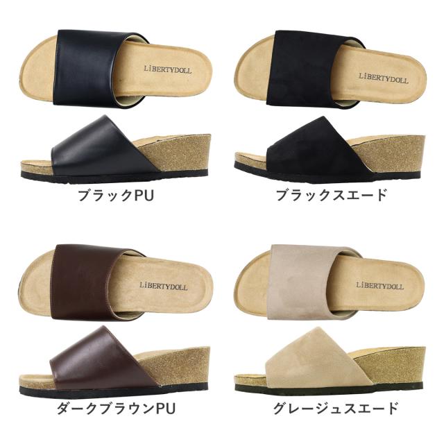 サンダル サボ コンフォート コルク ウェッジソール オープントゥ 軽量 履きやすい カジュアル No.4086 23.0cm〜24.5cm レディース 女性 黒 ブラック LiBERTYDOLL リバティードール