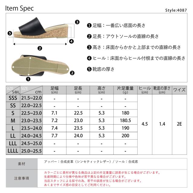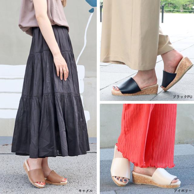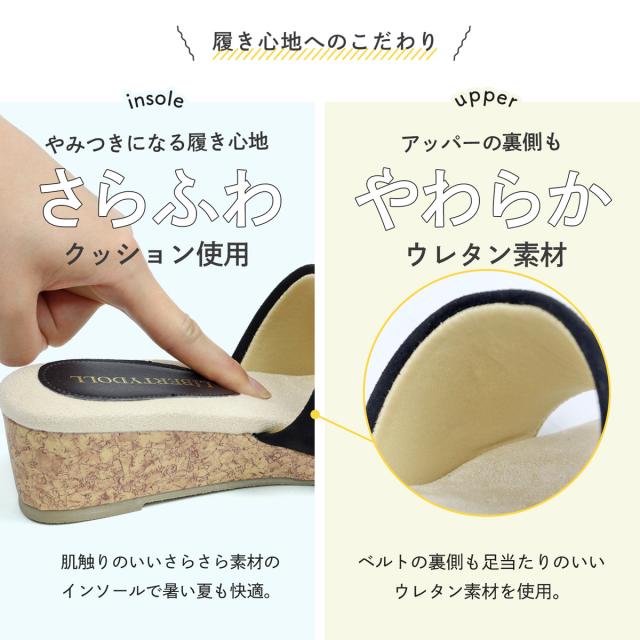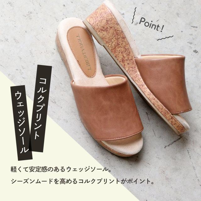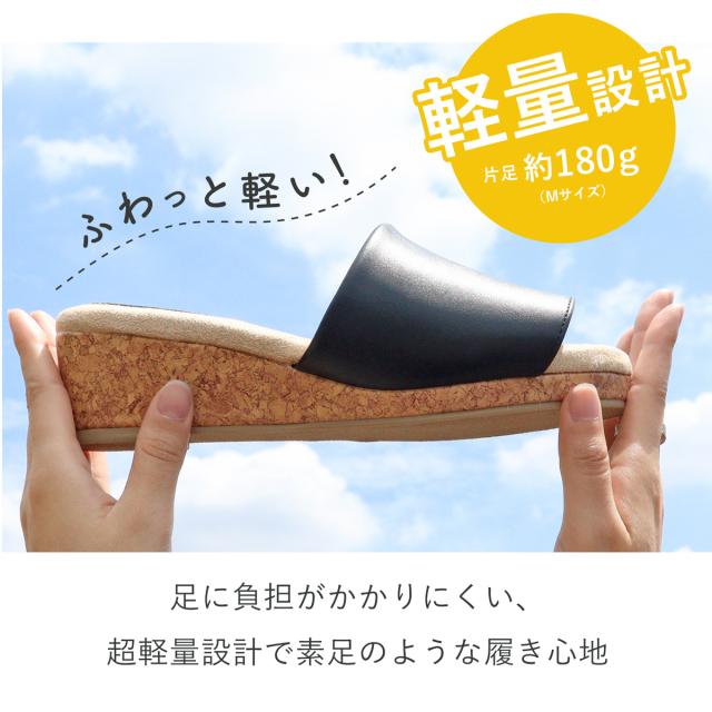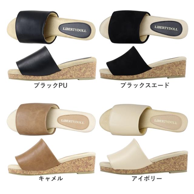 サンダル サボ コンフォート コルク ウェッジソール オープントゥ 軽量 快適 No.4087 23.0cm〜24.5cm 黒 ブラック LiBERTYDOLL