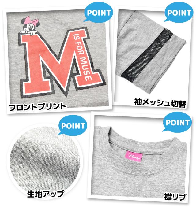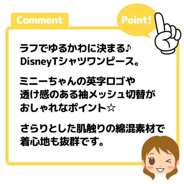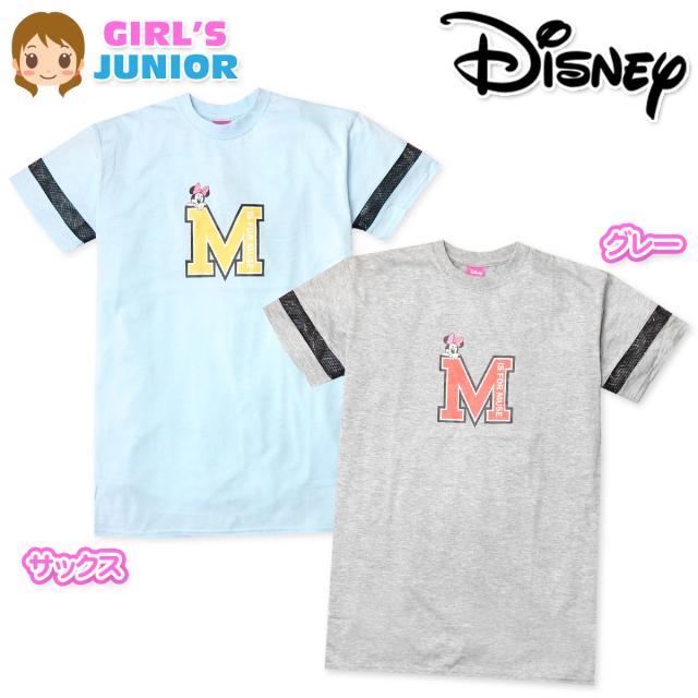 【送料無料】女児 ジュニア 半袖 Tシャツ ワンピース ディズニー ミニー ゆるかわ 綿混 メッシュ切替 英字ロゴ iw-0240【メール便対応】