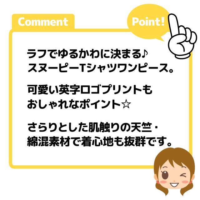 【送料無料】女児 ジュニア 半袖 Tシャツ ワンピース スヌーピー ゆるかわ 天竺 綿混 140cm 150cm 160cm iw-0289【メール便対応】