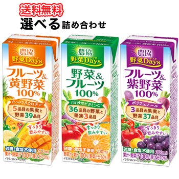 雪印 メグミルク 農協 野菜Days LL200mlシリーズ(フルーツ・黄野菜100%・紫野菜100%)3種類から選べる2ケース 200ml×18本/2ケース 送料無料