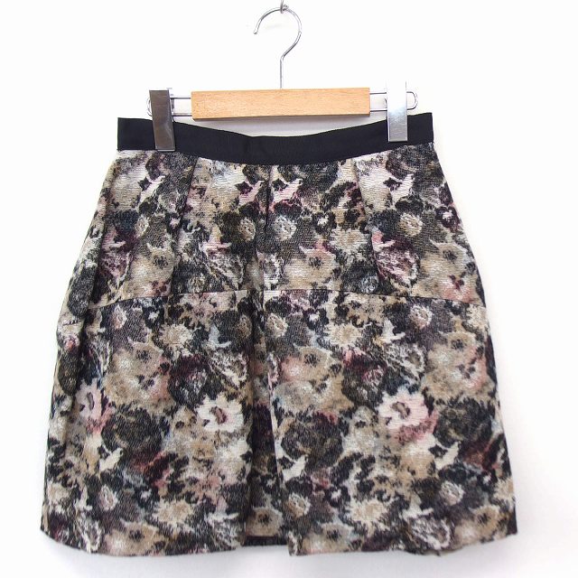 【中古】イエナ スローブ IENA SLOBE スカート 花柄 フレア タック ミニ 38 ベージュ ブラウン 茶 /FT18 レディース