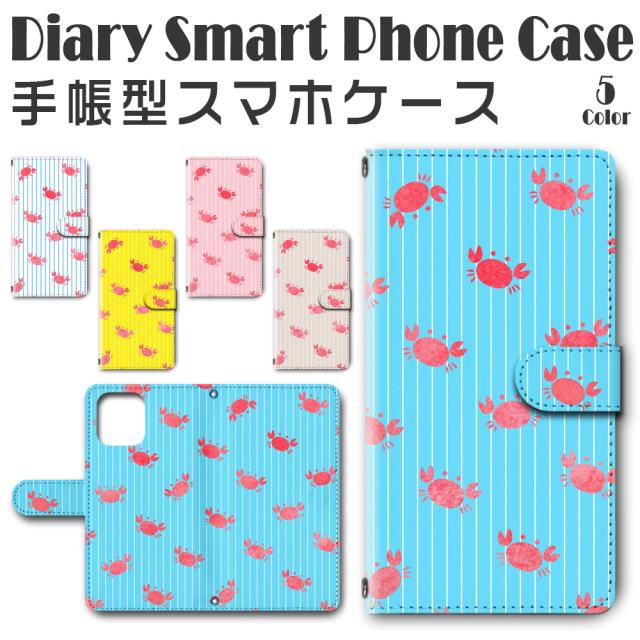 スマホ ケース スマホカバー スマホ カバー 手帳型 iPhone12 mini (5.4インチモデル) 対応 送料無料 カニ 蟹 ストライプ / dc-674