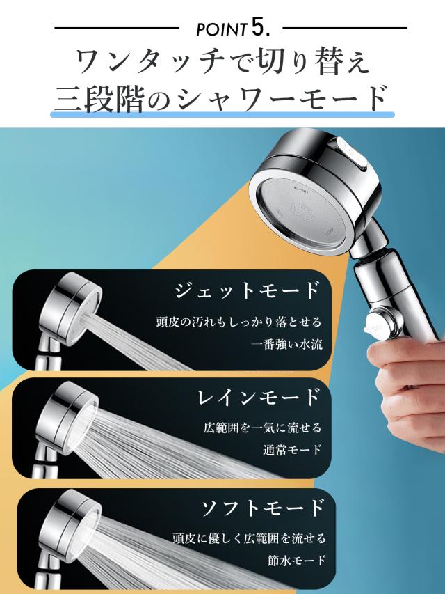 ・3段階モード(ジェットモード、レインモード、ソフトモード)を自由に切り替えできる。あなたにあったモードを選びより快適なバスタイムへ